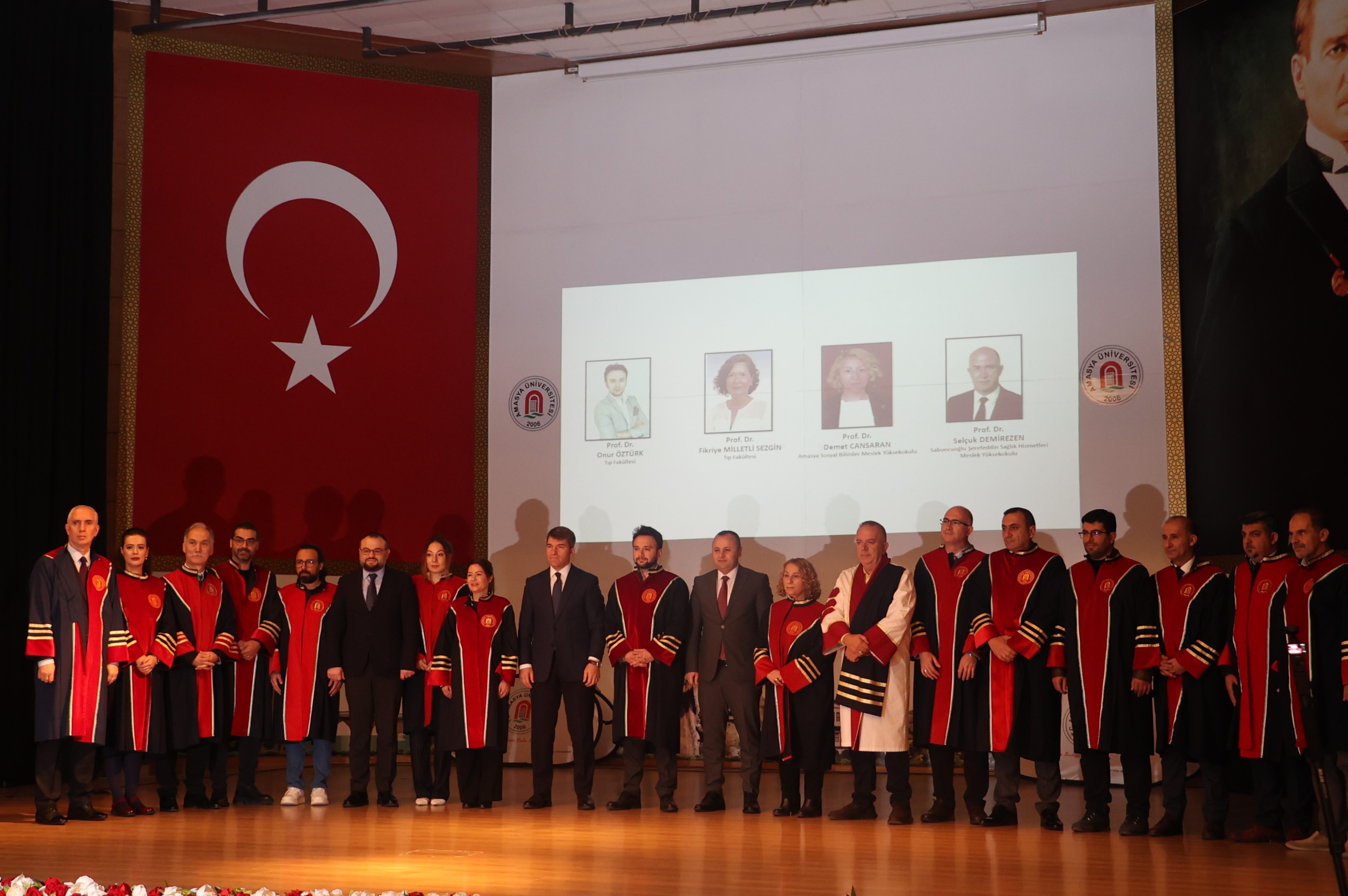 Konuşmaların ardından akademik yükselme sağlayan ve ilk ataması yapılan öğretim üyelerine cübbeleri ilgili fakülte ve yüksekokulların dekan ve müdürleri tarafından giydirildi, ödüle layık görülen akademisyenlere belgeleri takdim edildi.
