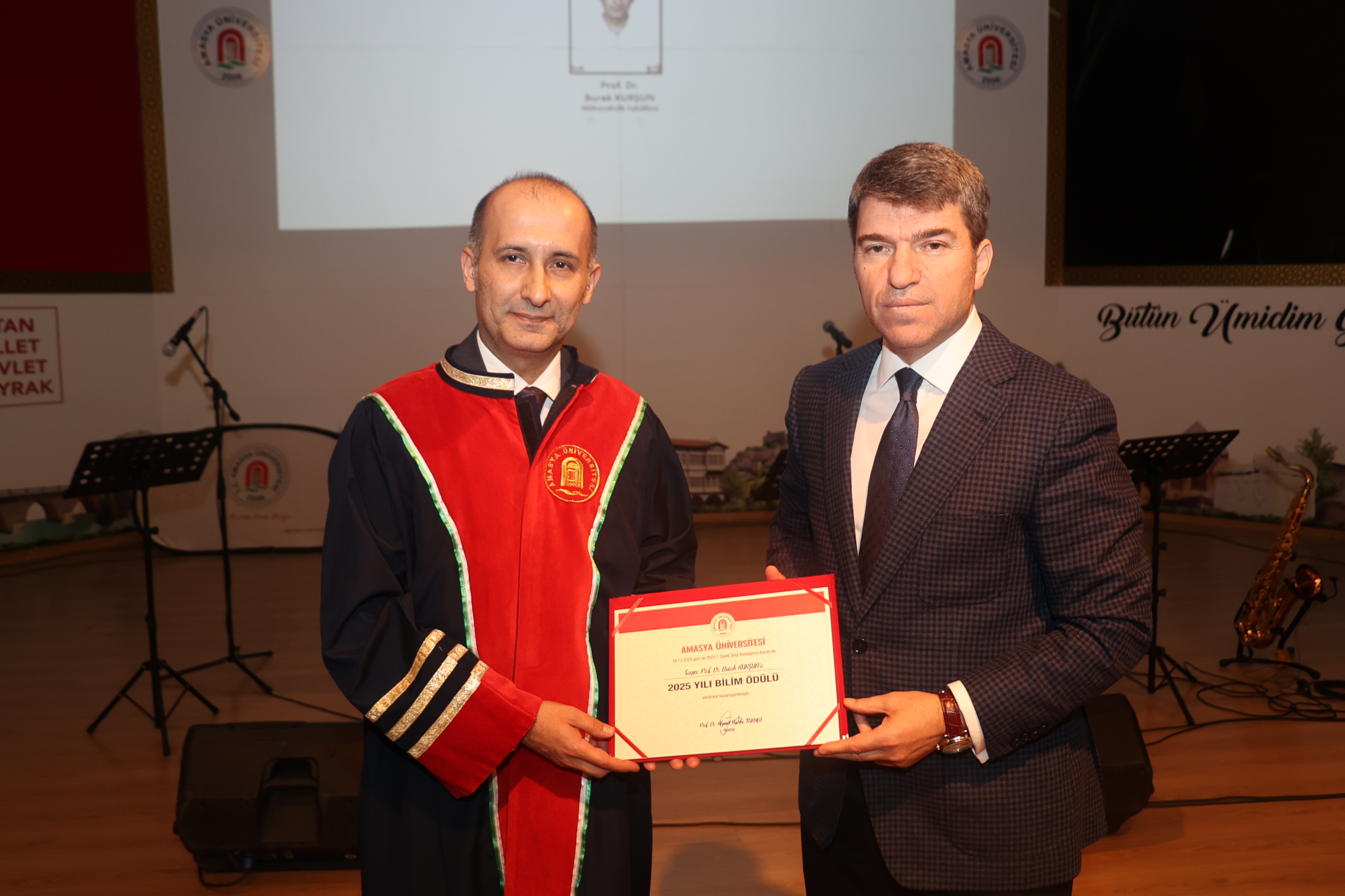 Bu kapsamda, “Bilim Ödülü” almaya hak kazanan Mühendislik Fakültesi Öğretim Üyesi Prof. Dr. Burak Kurşun’a ödülü Amasya Valisi Önder Bakan tarafından verildi.