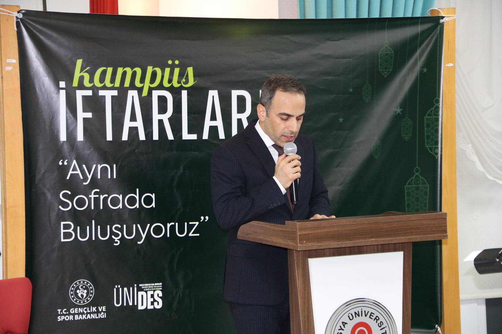 Programda konuşan Rektör Turabi ise Amasya Üniversitesi olarak öğrencilerle bir arada olmaktan büyük memnuniyet duyduklarını ifade etti. Programa katkı sunan tüm paydaşlara ve katılım sağlayan öğrencilere teşekkür eden Turabi, birlik ve beraberliğin daim olması temennisinde bulunarak tutulan oruçların kabul olmasını diledi.