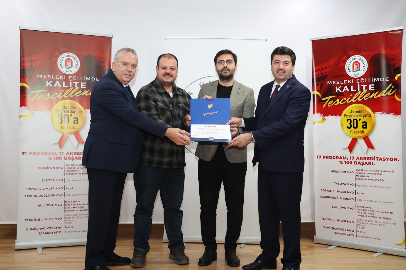 Program, MEDEK Başkanı Prof. Dr. Mehmet Sarıbıyık ile Amasya Üniversitesi Rektörü Prof. Dr. Ahmet Hakkı Turabi’nin, akreditasyon belgesi almaya hak kazanan yüksekokul müdürleri ve program temsilcilerine belgelerini takdim etmesinin ardından gerçekleştirilen toplu fotoğraf çekimiyle sona erdi.
