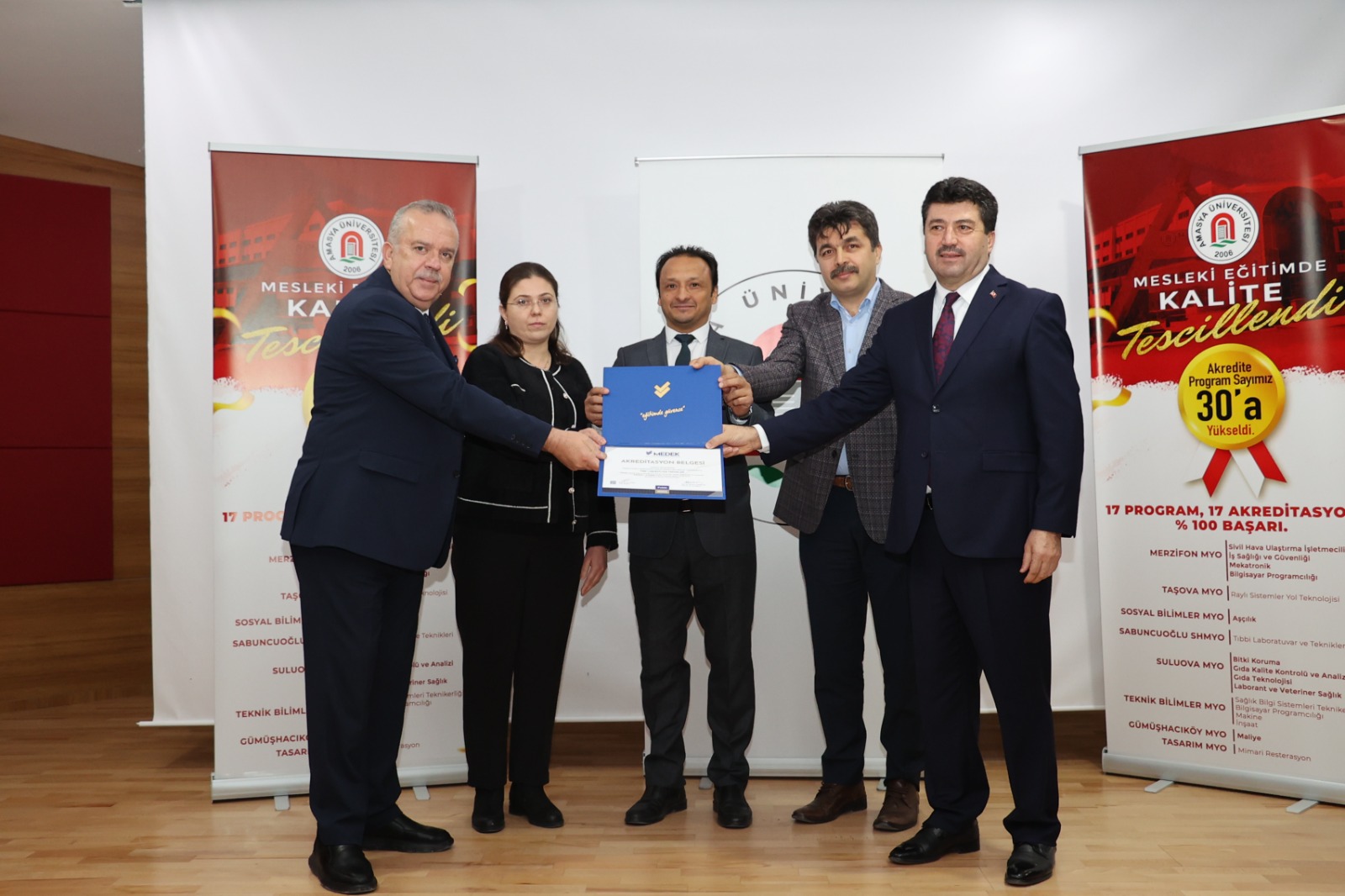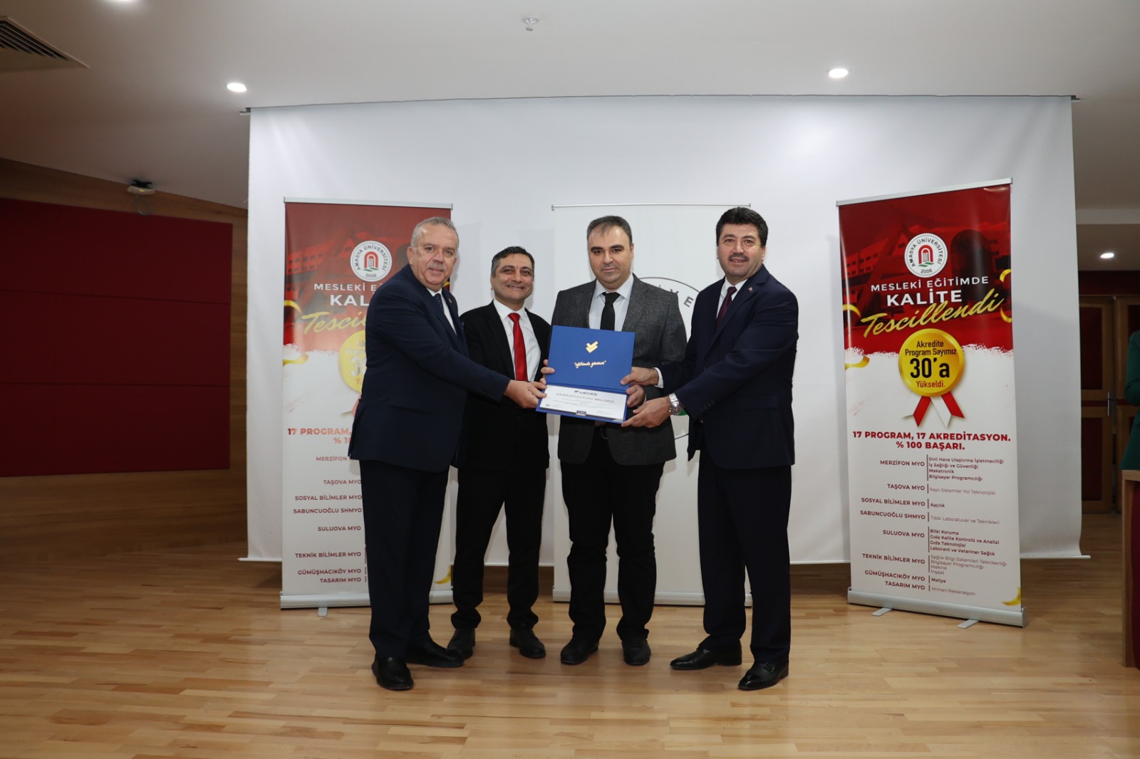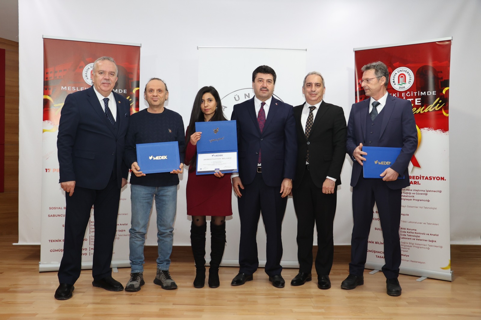 Amasya Üniversitesi Rektörlük Konferans Salonu’nda gerçekleştirilen törene; Sakarya Üniversitesi Rektörü ve MEDEK Başkanı Prof. Dr. Mehmet Sarıbıyık, Amasya Üniversitesi Rektörü Prof. Dr. Ahmet Hakkı Turabi, Prof. Dr. Murat Kurt ve Prof. Dr. Resul Çekin’in yanı sıra dekanlar, yüksekokul müdürleri, akademik ve idari personel ile öğrenciler katıldı.