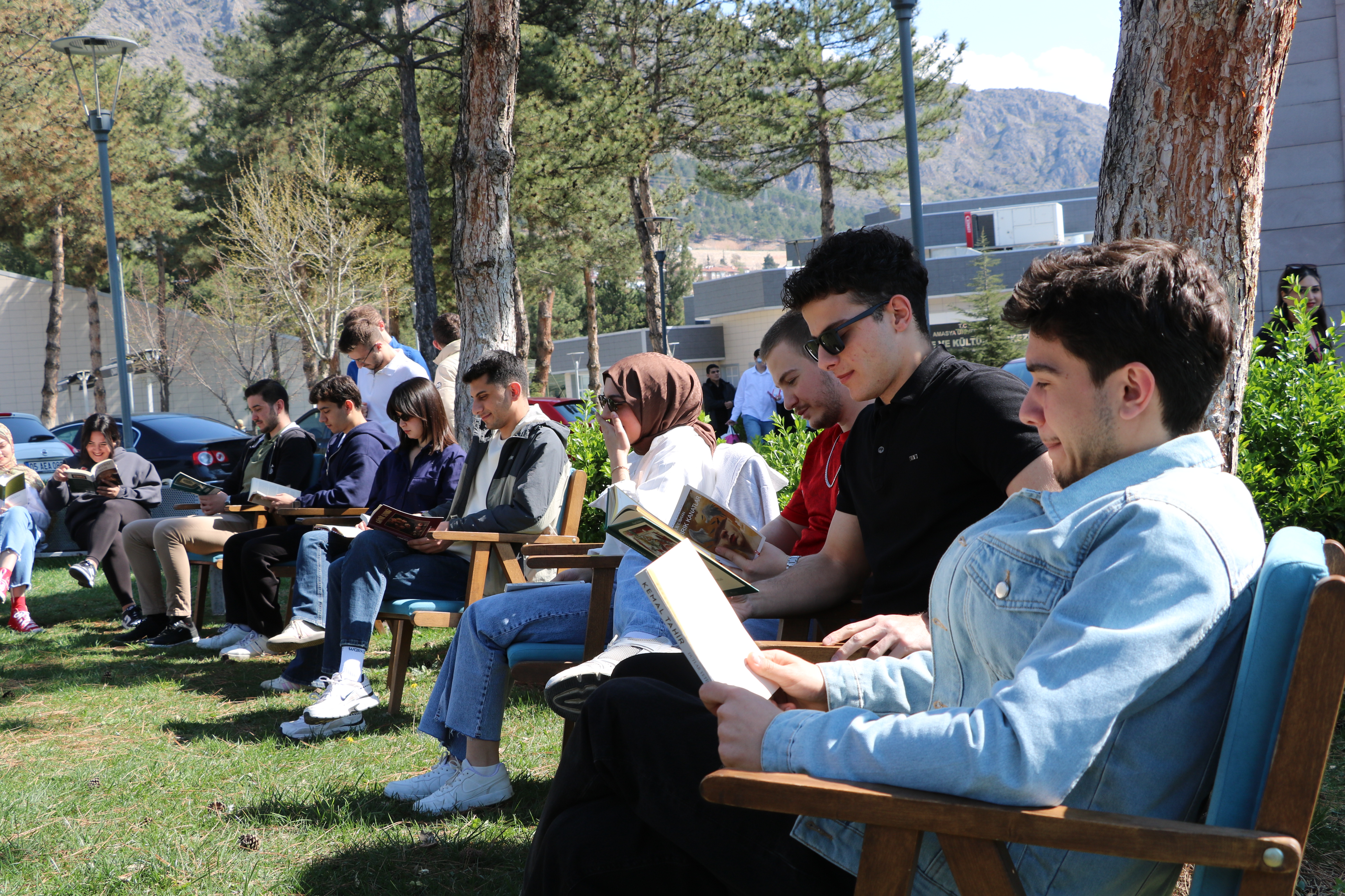 Amasya Üniversitesi tarafından Milli Hakimiyet Yerleşkesi Hüseyin Hüsameddin Yaşar Merkez Kütüphanesi bahçesinde 62. Kütüphane Haftası etkinlikleri kapsamında gerçekleştirilen “Kitap Okuma Etkinliği”, öğrencilerin yoğun katılımıyla düzenlendi. “İyileştiren Kütüphaneler” temasıyla hayata geçirilen etkinlikte, kitapların bireysel ve toplumsal gelişimdeki rolüne dikkat çekildi.