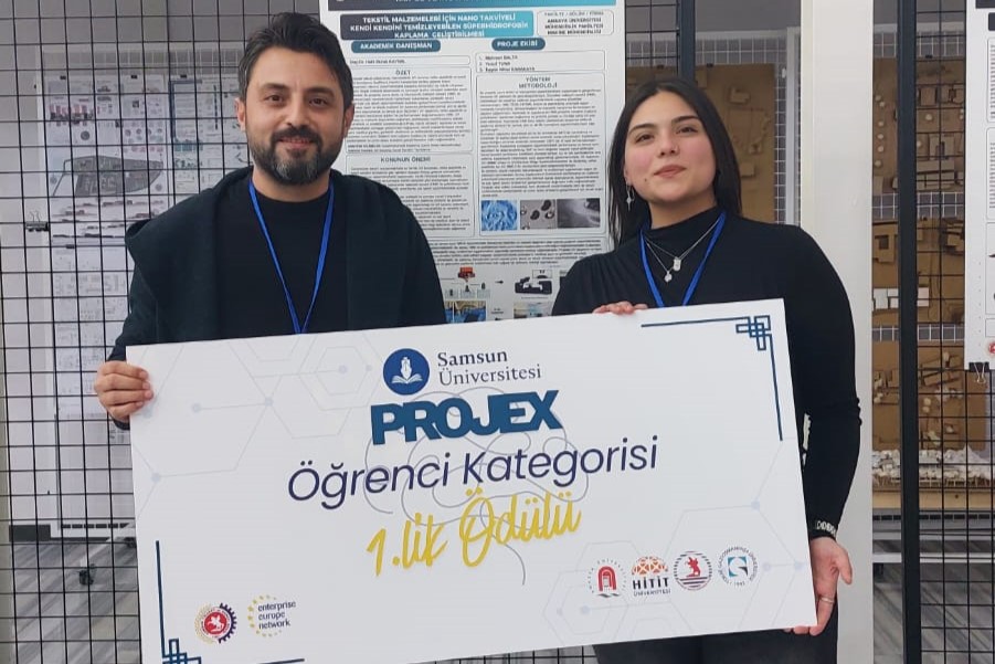 Toplam 43 proje arasında öne çıkan “Tekstil Malzemeleri İçin Nano Takviyeli, Kendi Kendini Temizleyebilen Süperhidrofobik Kaplama Geliştirilmesi” başlıklı çalışma, yenilikçi yaklaşımı ve yüksek uygulama potansiyeli sayesinde jüri tarafından büyük takdir topladı.