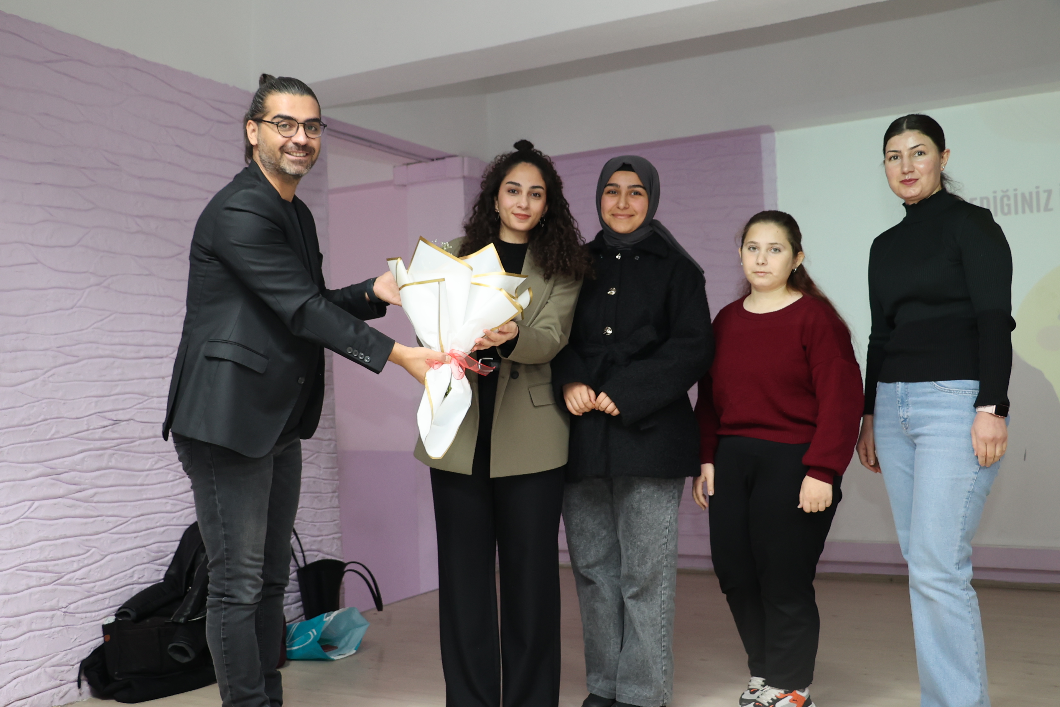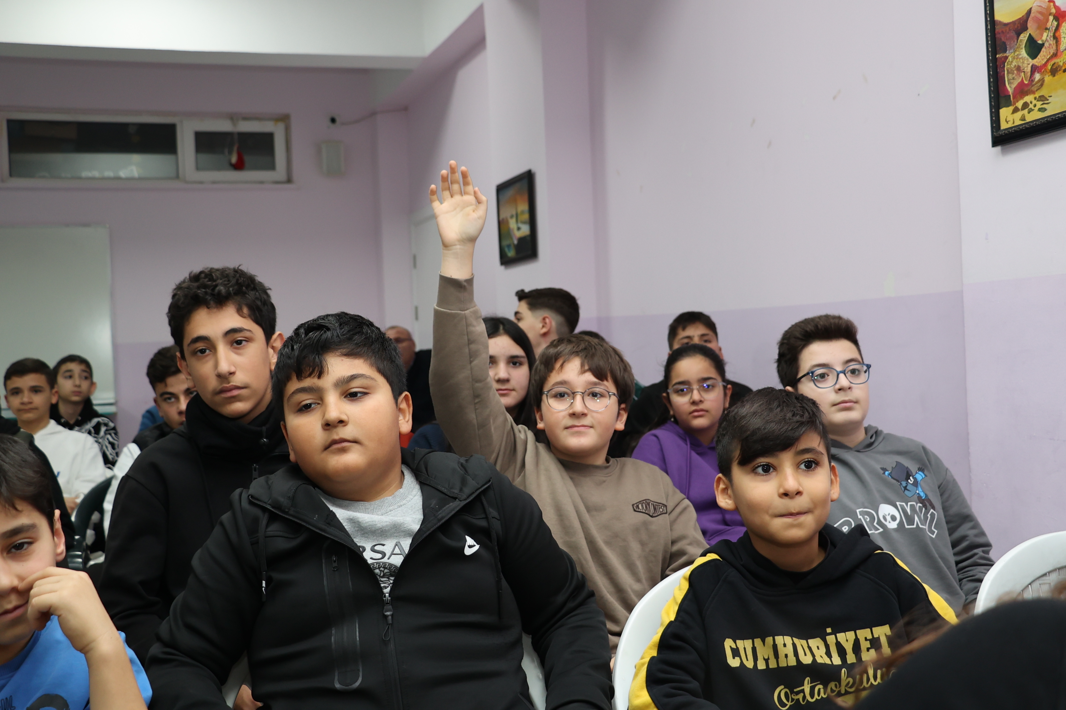 Etkinlik kapsamında Eğitim Fakültesi Türkçe Eğitimi Ana Bilim Dalı öğrencileri Zühal Erdoğan, Ünzile Çaycı, İrem Lap ve Seda Güreli sunumlarıyla programa katkı sundu. Söyleşinin sonunda Cumhuriyet Ortaokulu Müdürü Ender Ayrık, Prof. Dr. Erkan Çer’e katkılarından dolayı teşekkür ederek kendisine çiçek takdim etti.