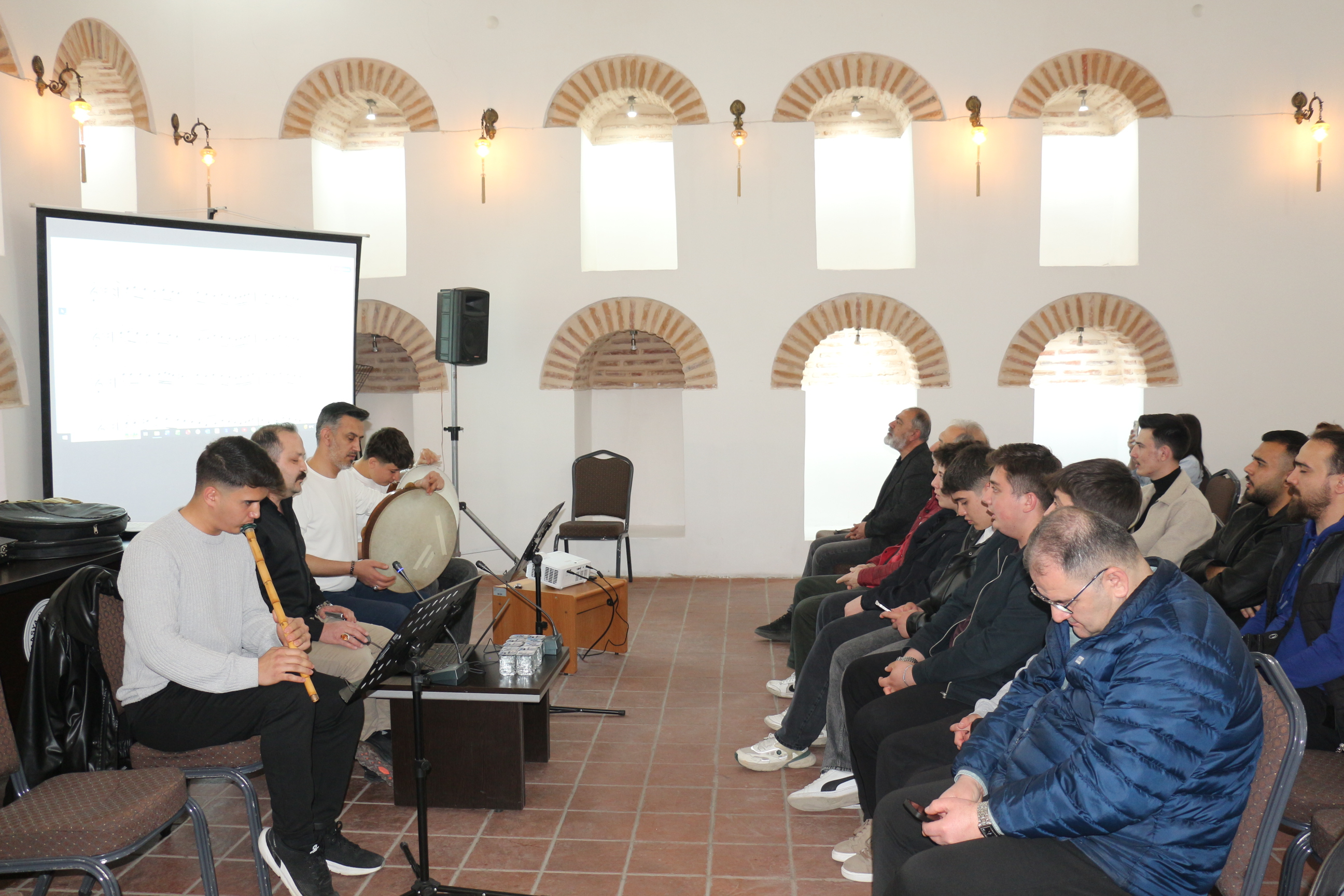 Amasya Üniversitesi İmaret Bilim Kültür ve Sanat Merkezinde, çarşamba akşamları düzenli olarak gerçekleştirilen “Dini Musiki İmaret Meşkleri” programı Hattat Hamdullah Güzel Sanatlar Fakültesi Dekan Yardımcısı Doç. Dr. Tahir Çağman’ın riyasetinde yürütülmeye devam ediyor.