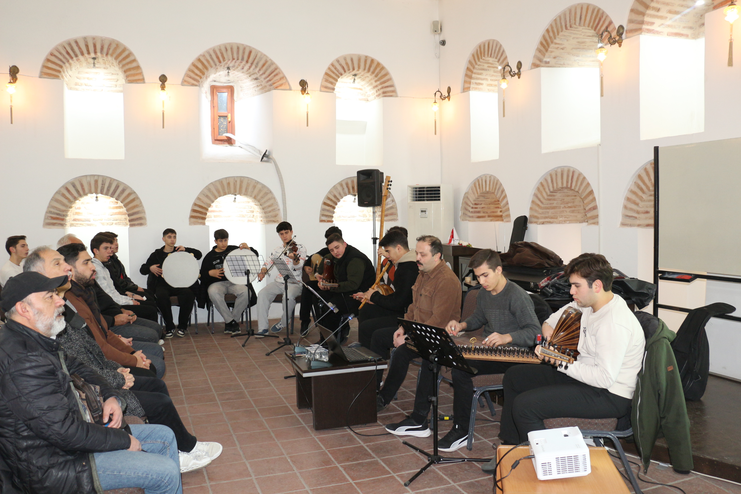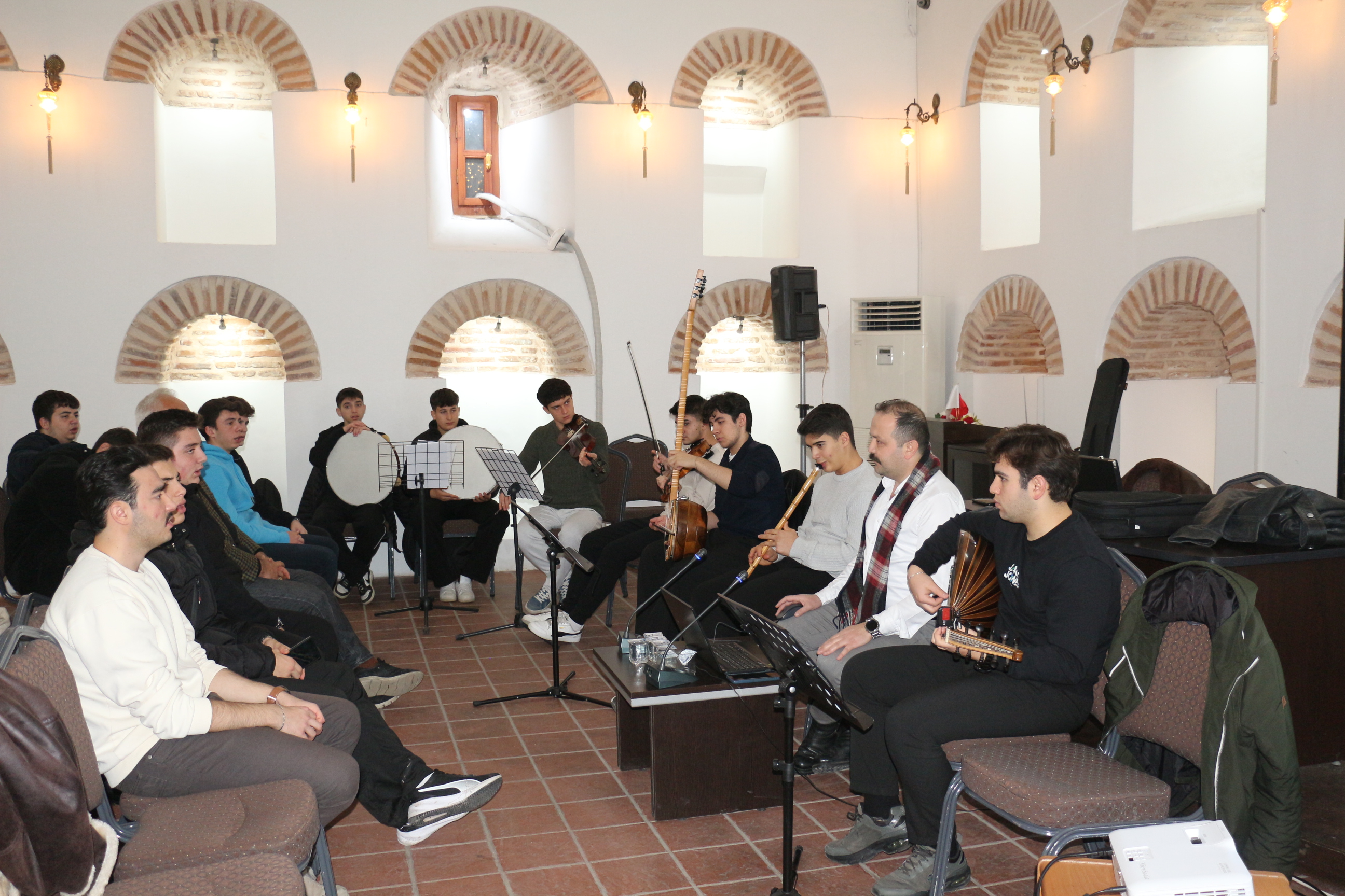 Amasya Üniversitesi İmaret Bilim Kültür ve Sanat Merkezinde, çarşamba akşamları düzenli olarak gerçekleştirilen “Dini Musiki İmaret Meşkleri” programı, Hattat Hamdullah Güzel Sanatlar Fakültesi Dekan Yardımcısı Doç. Dr. Tahir Çağman’ın riyasetinde başarıyla sürdürülüyor.