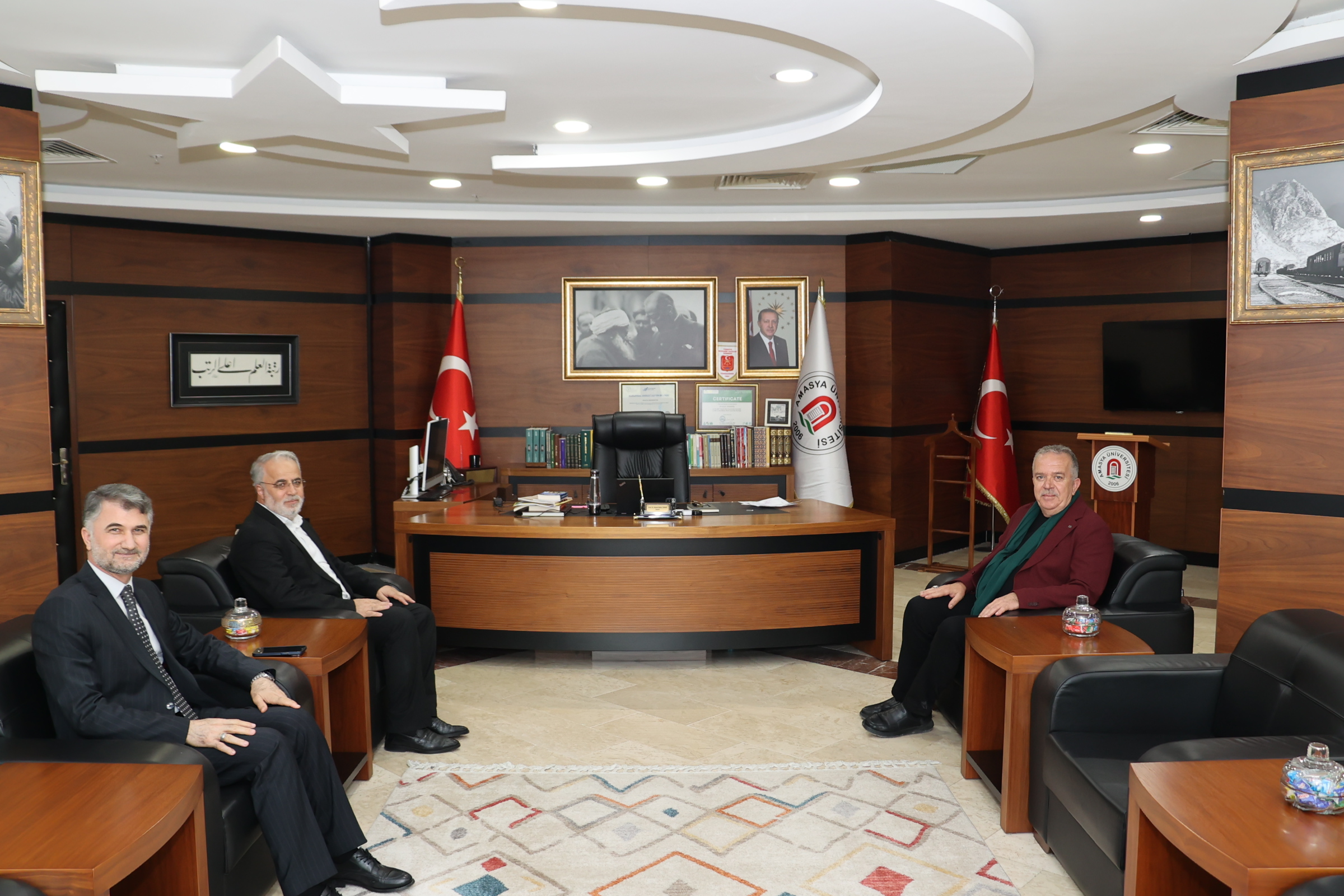 Amasya İl Müftüsü İbrahim Yavuz ile Diyanet İşleri Başkanlığı’nda uzun yıllar Başkan Yardımcılığı görevlerinde bulunan Doç. Dr. Burhan İşliyen, Amasya Üniversitesi Rektörü Prof. Dr. Ahmet Hakkı Turabi’ye nezaket ziyaretinde bulundu.