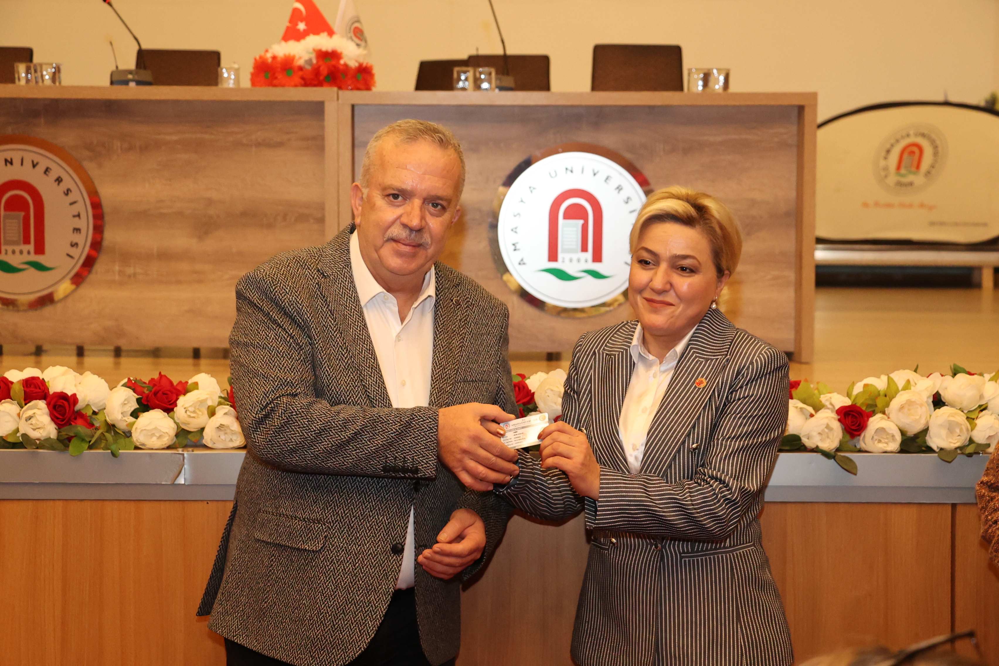 Program, panelist öğrencilere katılım belgelerinin sunulmasının ardından, Türkiye Sakatlar Derneği Amasya Şubesi Başkanı Emine Hicin Aslan’a üniversite öğrenci kimliğinin takdim edilmesiyle sona erdi. Bu anlamlı takdim, üniversitenin engelli bireylerin eğitim hakkına verdiği önemin ve kapsayıcı yaklaşımının güçlü bir göstergesi olarak salondaki katılımcılardan büyük takdir topladı.