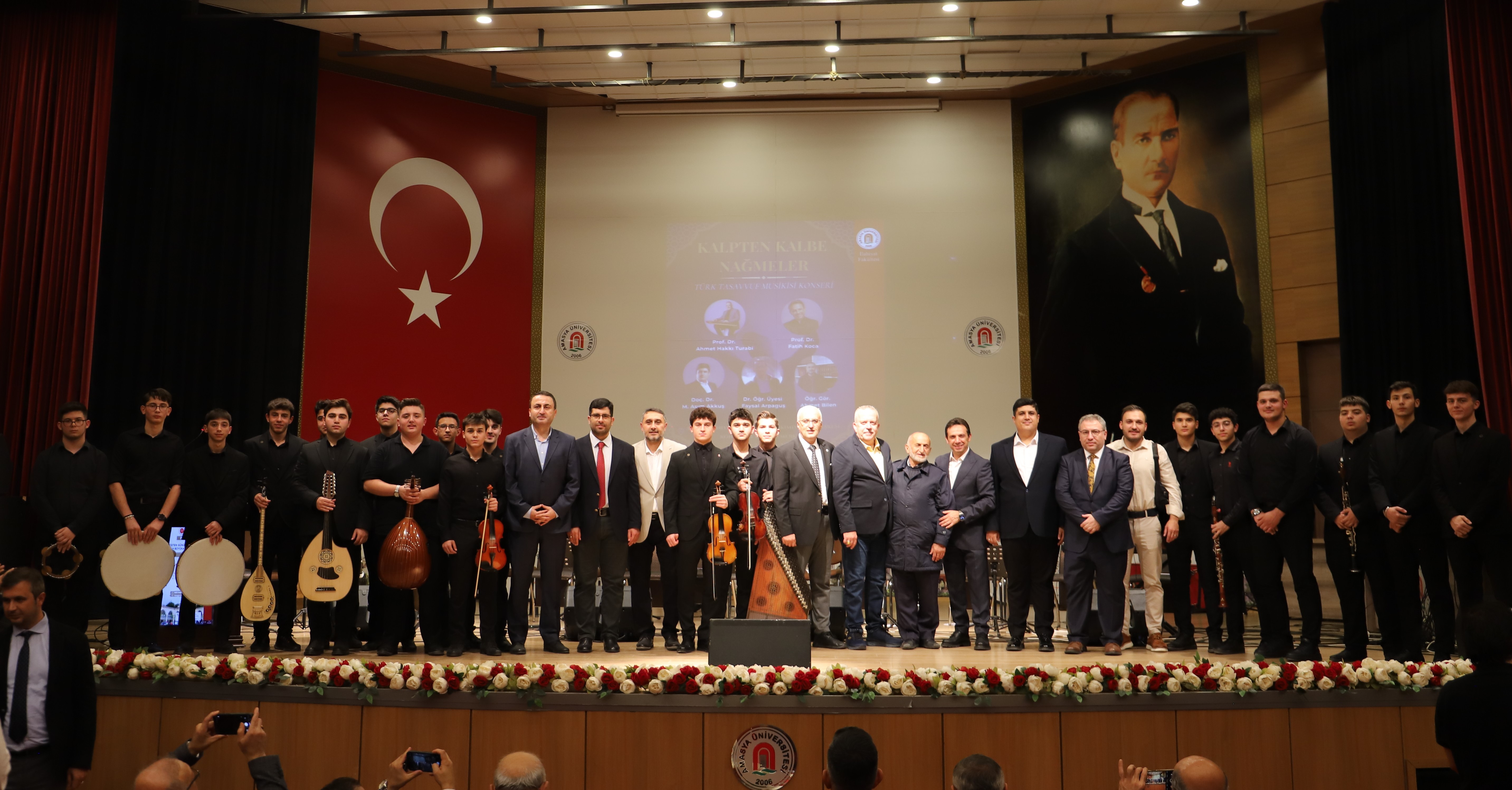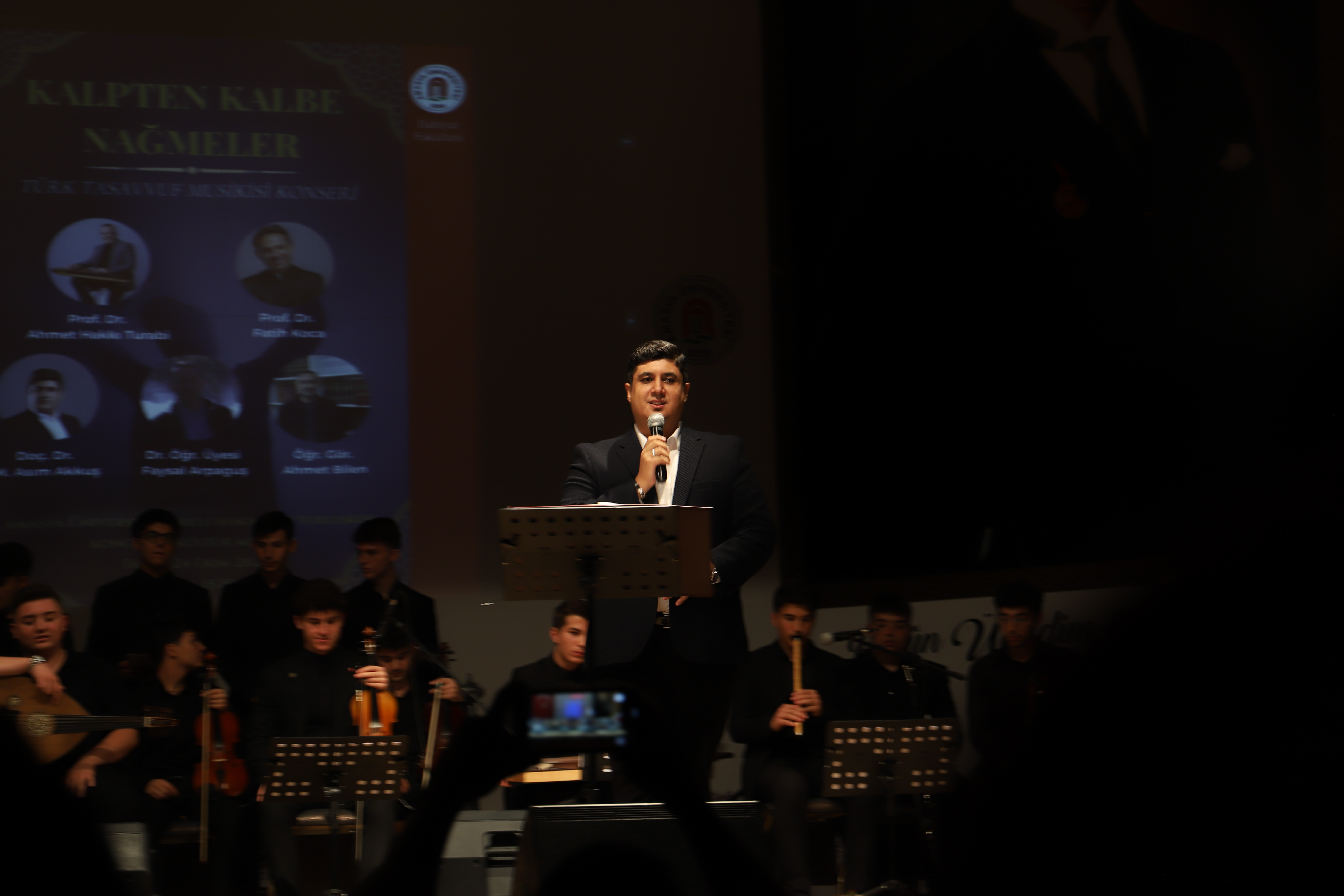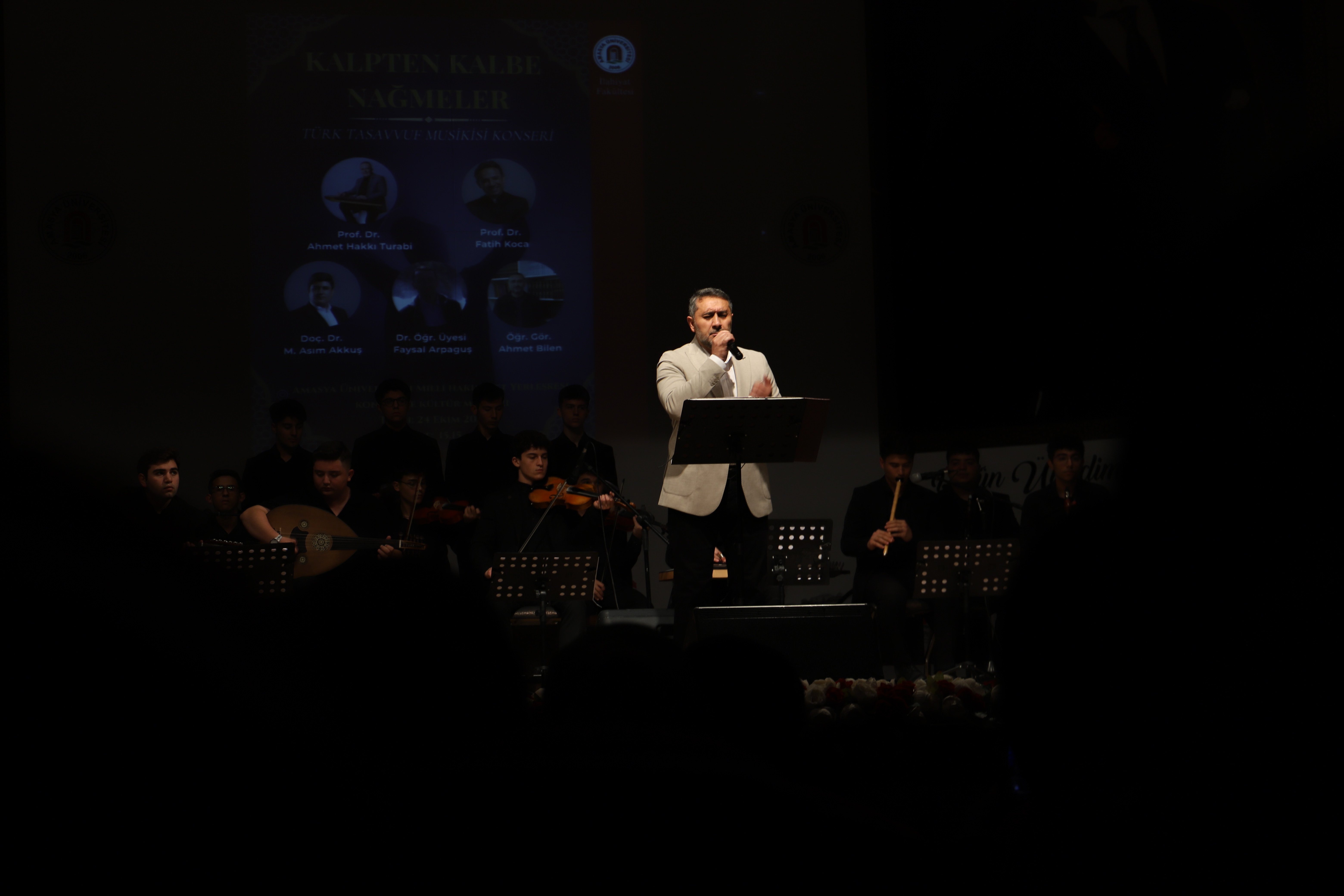Panelin ardından gerçekleştirilen “Kalpten Kalbe Nağmeler” konseri, dinleyicilere manevi bir atmosfer sunarken, sahnede Prof. Dr. Ahmet Hakkı Turabi, Prof. Dr. Fatih Koca, Doç. Dr. M. Asım Akkuş, Dr. Öğr. Üyesi Faysal Arpaguş ve Öğr. Gör. Ahmet Bilen yer aldı.