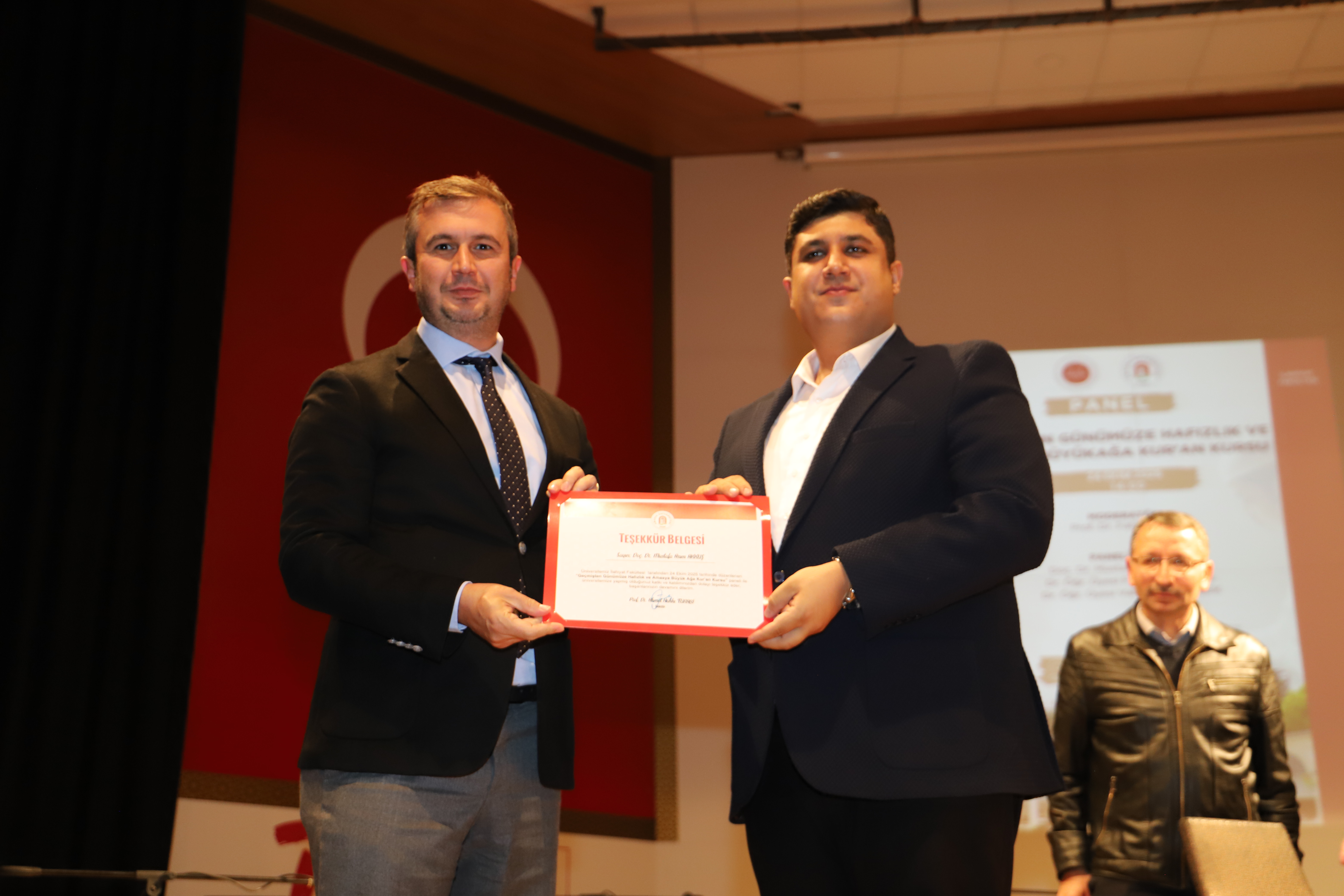 Panelin moderatörlüğünü Prof. Dr. Fatih Koca üstlenirken, Doç. Dr. Mustafa Asım Akkuş, Dr. Öğr. Üyesi Faysal Arpaguş ve Dr. Öğr. Üyesi Vahdeddin Şimşek panelde hafızlık eğitiminin tarihsel gelişimi, Amasya’daki uygulamaları ve Büyükağa Kur’an Kursu’nun bölgeye katkılarını ele aldı.