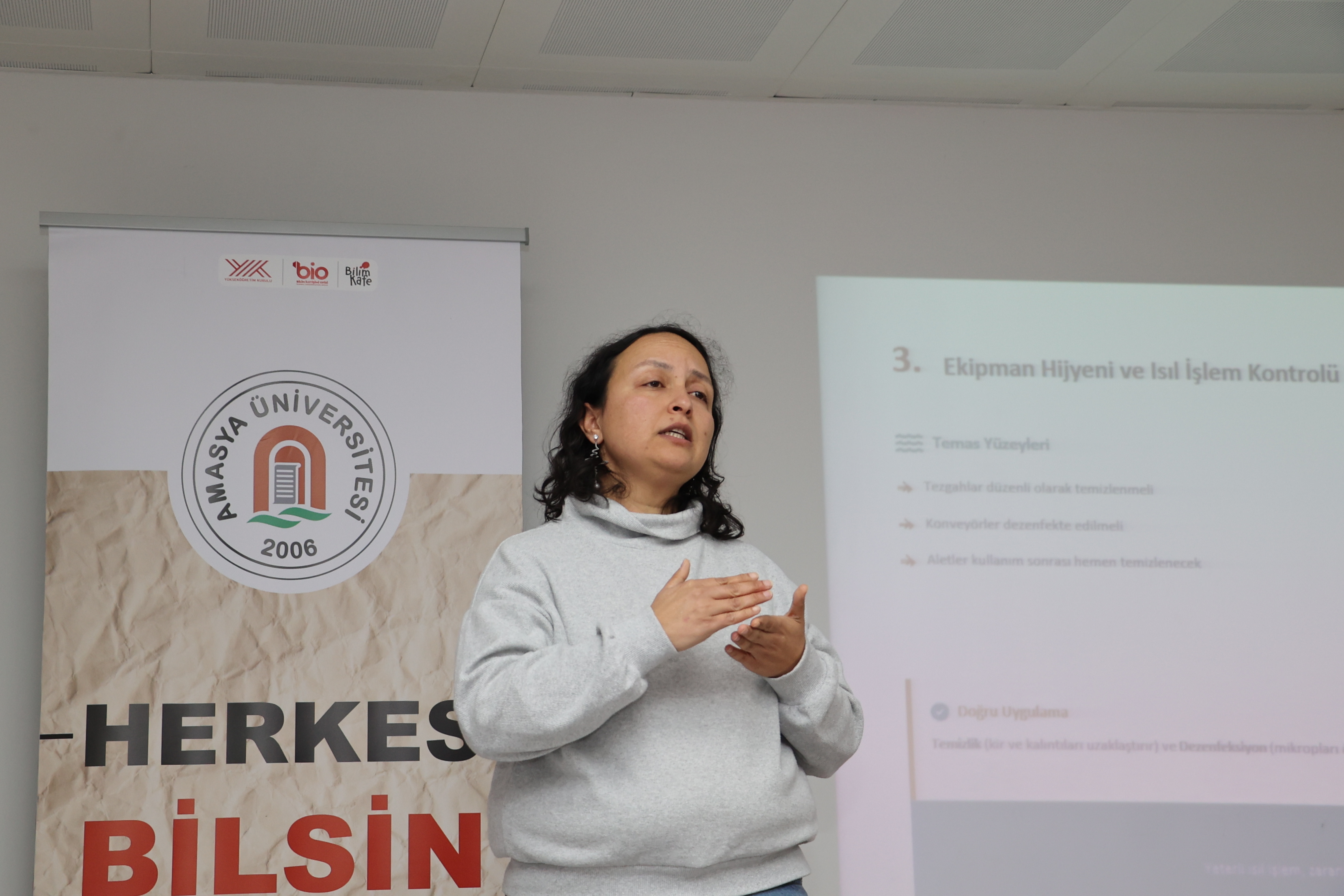 Amasya Üniversitesi Bilim İletişimi Ofisi koordinasyonunda, Bilim Kafe etkinlikleri kapsamında düzenlenen “Gıda Hijyeninde Altın Kurallar ve Güvenli Gıda Uygulamaları” başlıklı söyleşi, Gümüşhacıköy İlçe Halk Kütüphanesi’nde gerçekleştirildi.