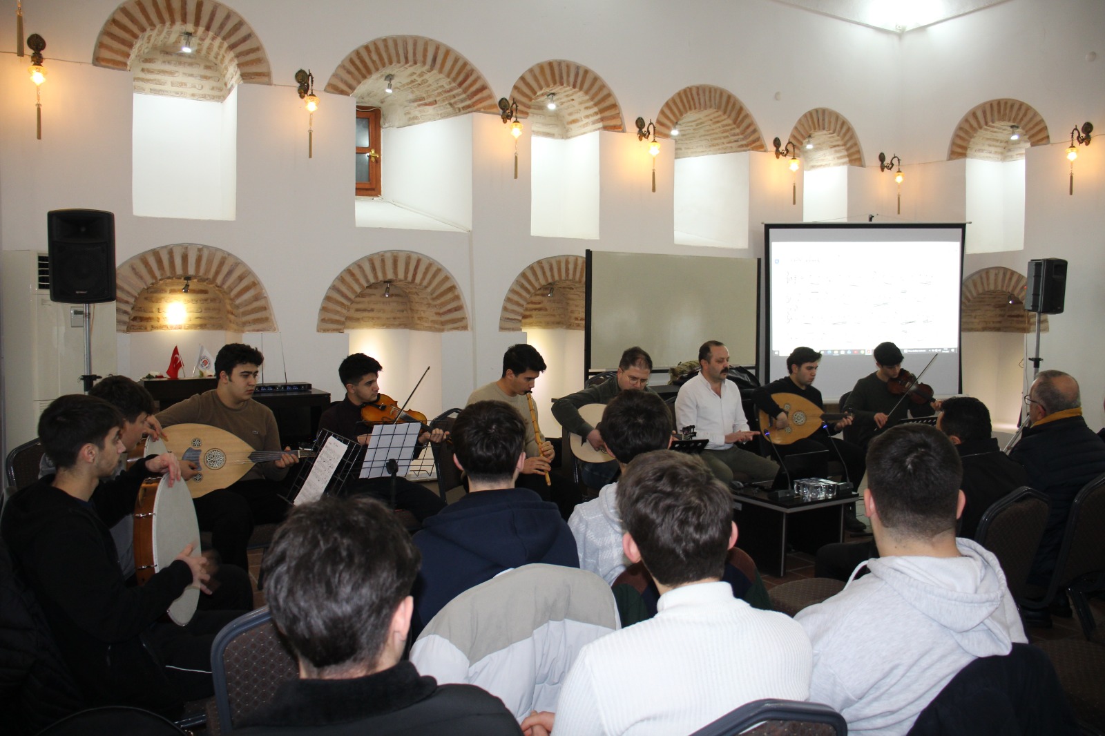 Enstrüman icracılarının da aktif katılım gösterdiği meşklerde, geleneksel dini musikinin seçkin örnekleri başarıyla seslendirildi.