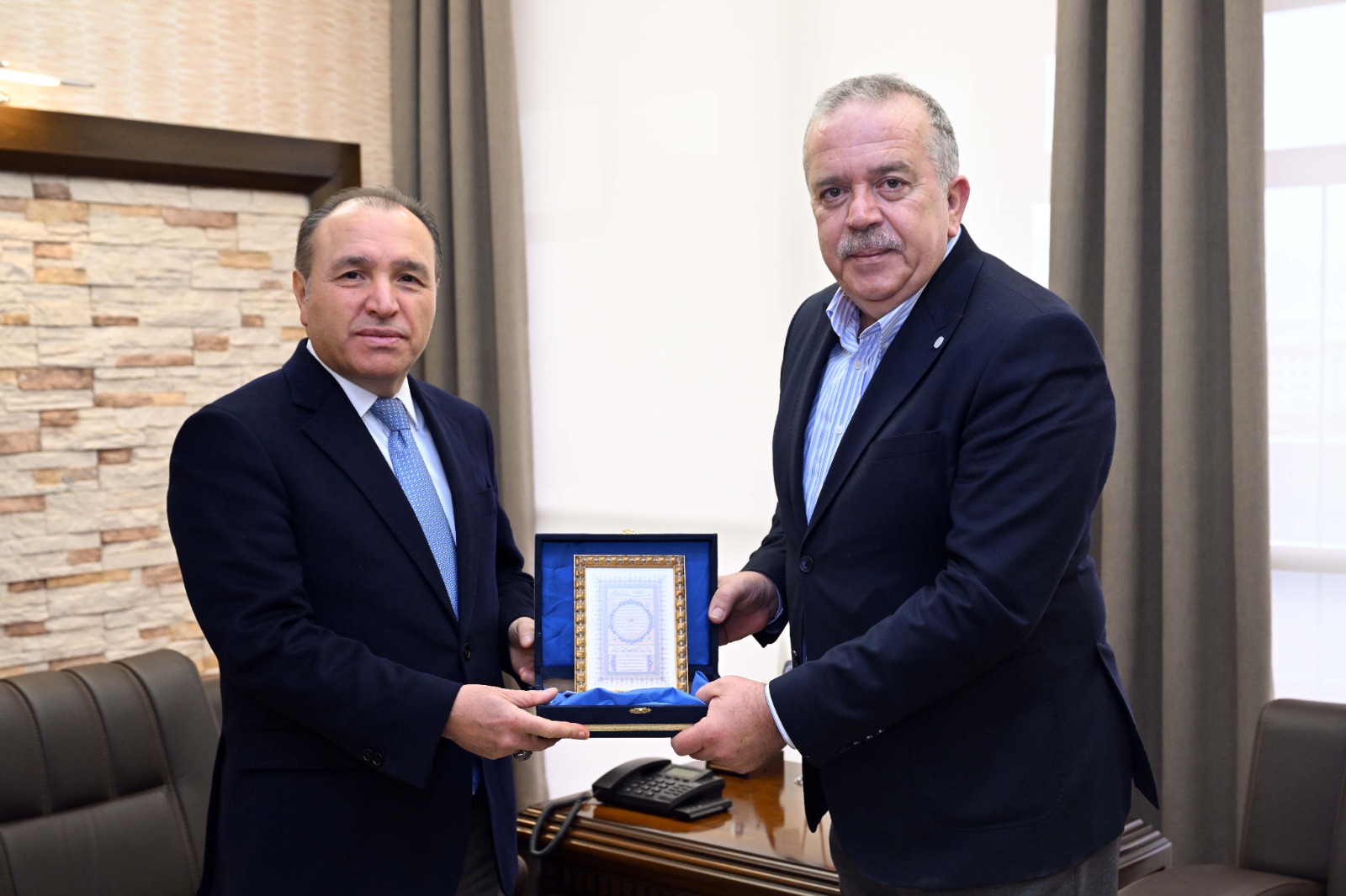 Amasya Üniversitesi Rektörü Prof. Dr. Ahmet Hakkı Turabi, Afyon Kocatepe Üniversitesi Rektörü Prof. Dr. Mehmet Karakaş’ı makamında ziyaret etti.