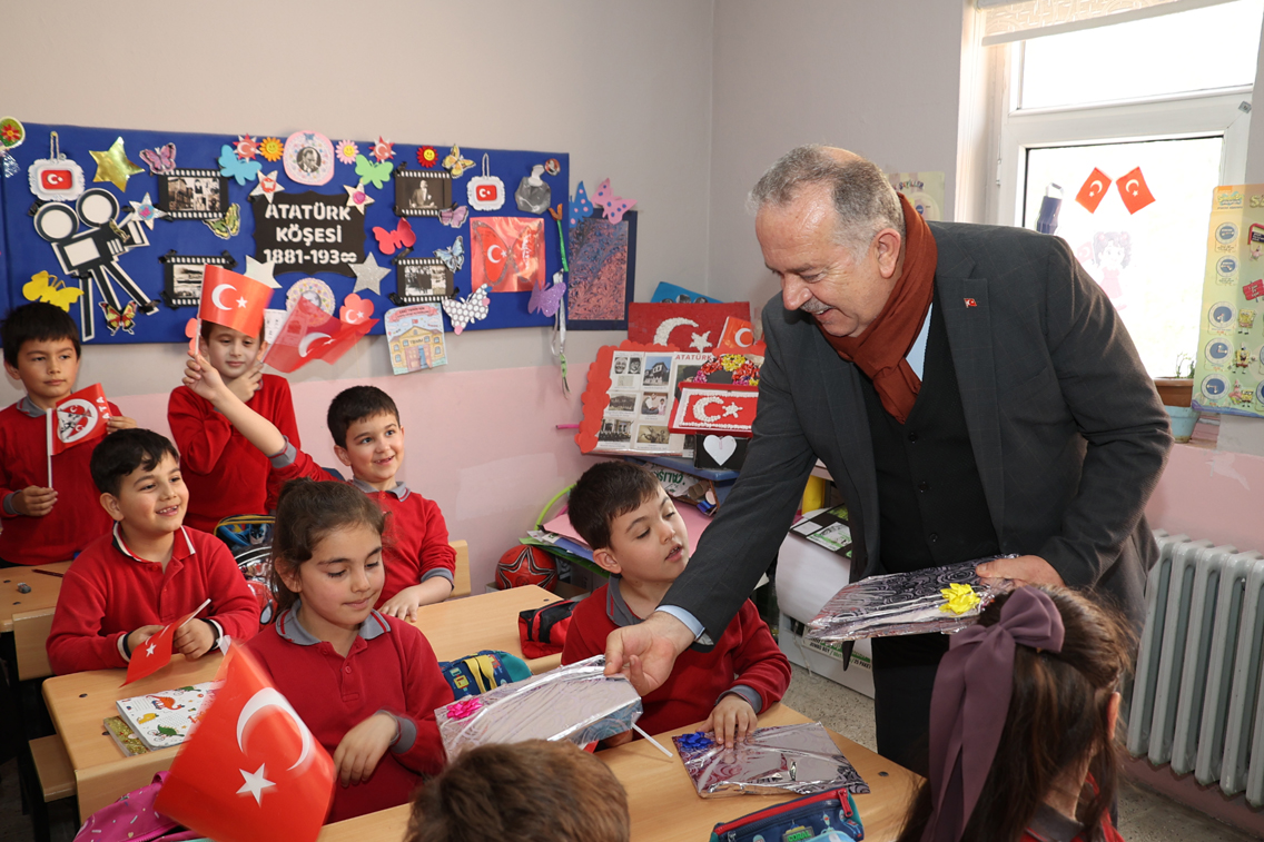 Ziyaretin sonunda Rektör Turabi, minik öğrencilere çeşitli hediyeler takdim ederek okuldan ayrıldı.