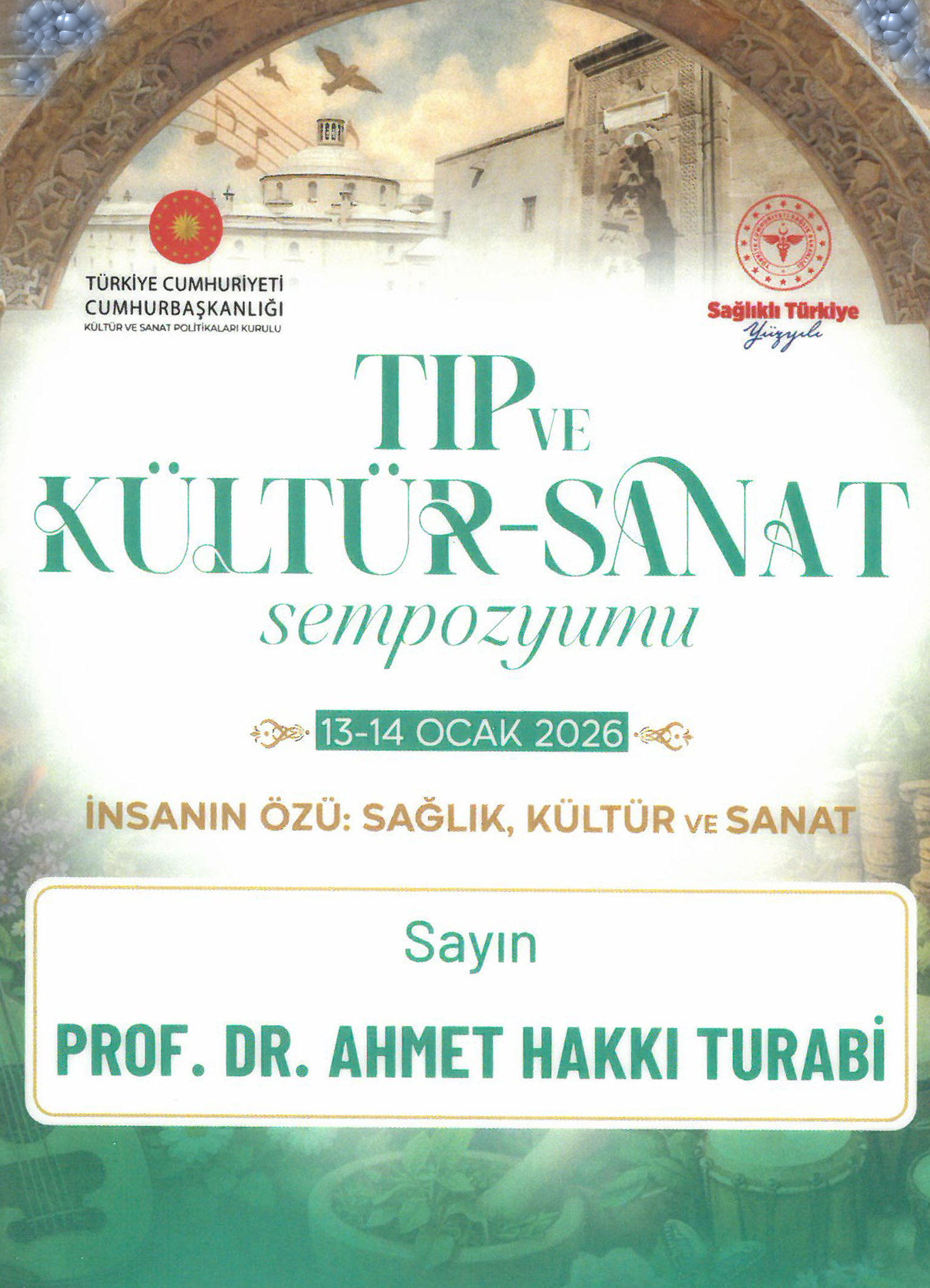 Amasya Üniversitesi Rektörü Prof. Dr. Ahmet Hakkı Turabi, Cumhurbaşkanlığı Kültür ve Sanat Politikaları Kurulu ile Sağlık Bakanlığı iş birliğinde düzenlenen “Tıp ve Kültür-Sanat Sempozyumu”na katıldı.