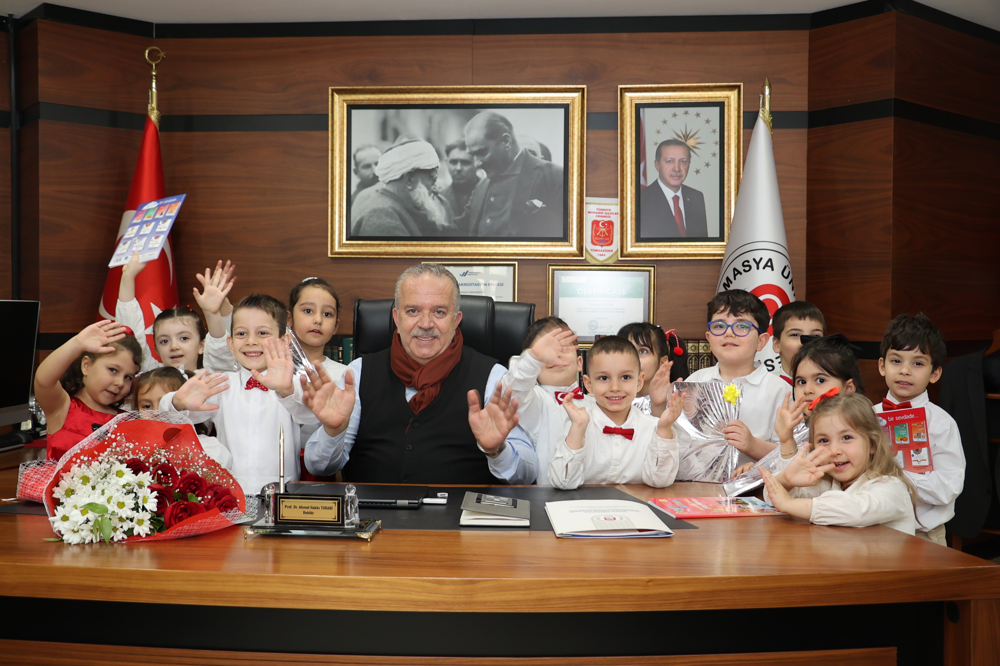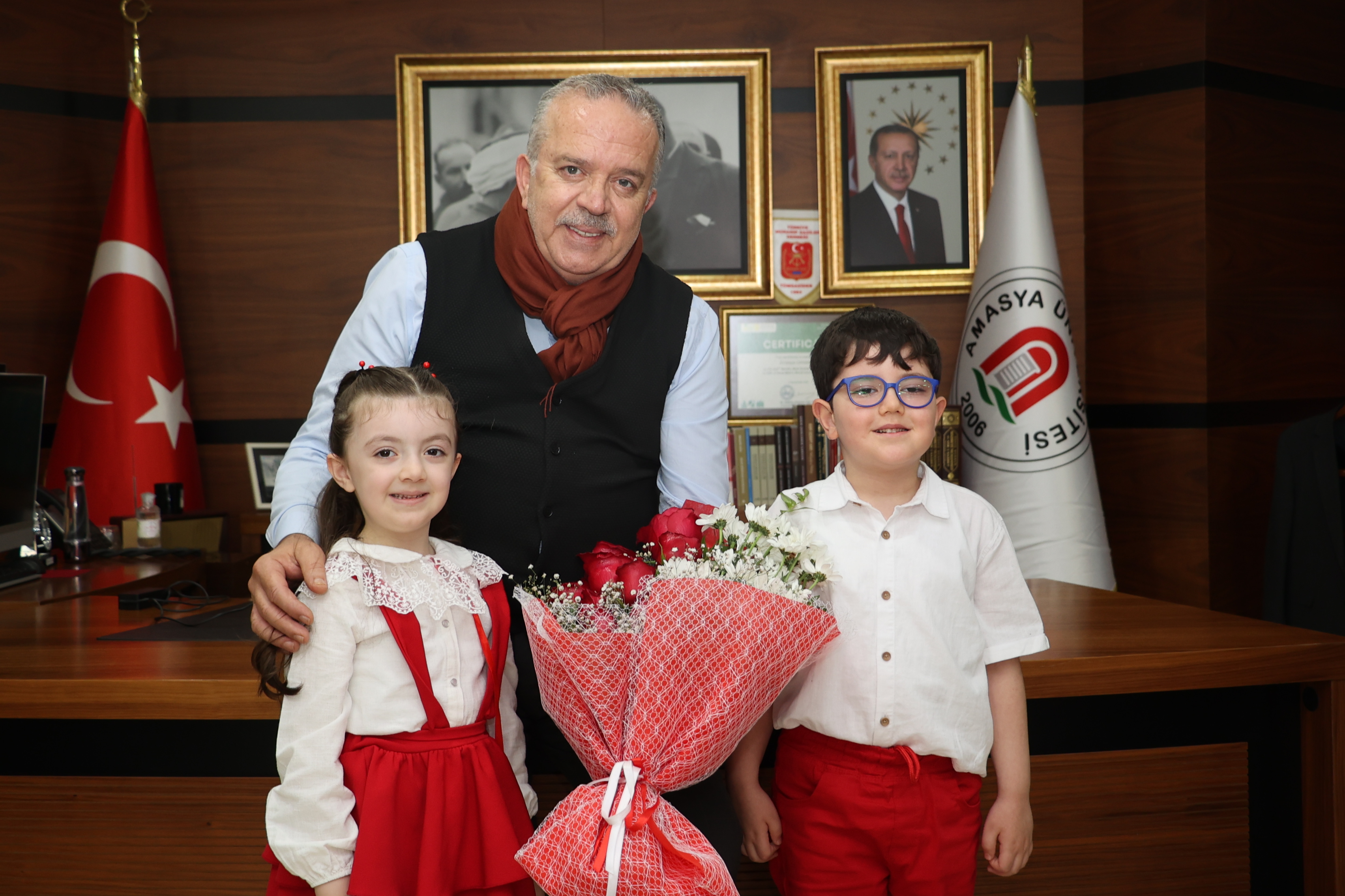 23 Nisan Ulusal Egemenlik ve Çocuk Bayramı dolayısıyla, DEHA Montessori & STEM Anaokulları Okul Müdürü Burcu Bostancı, Müdür Yardımcısı Nafiye Ünlü, öğretmen Münevver Güler ve Büyük Dehalar Sınıfı öğrencileri, Amasya Üniversitesi Rektörü Prof. Dr. Ahmet Hakkı Turabi’yi makamında ziyaret etti.