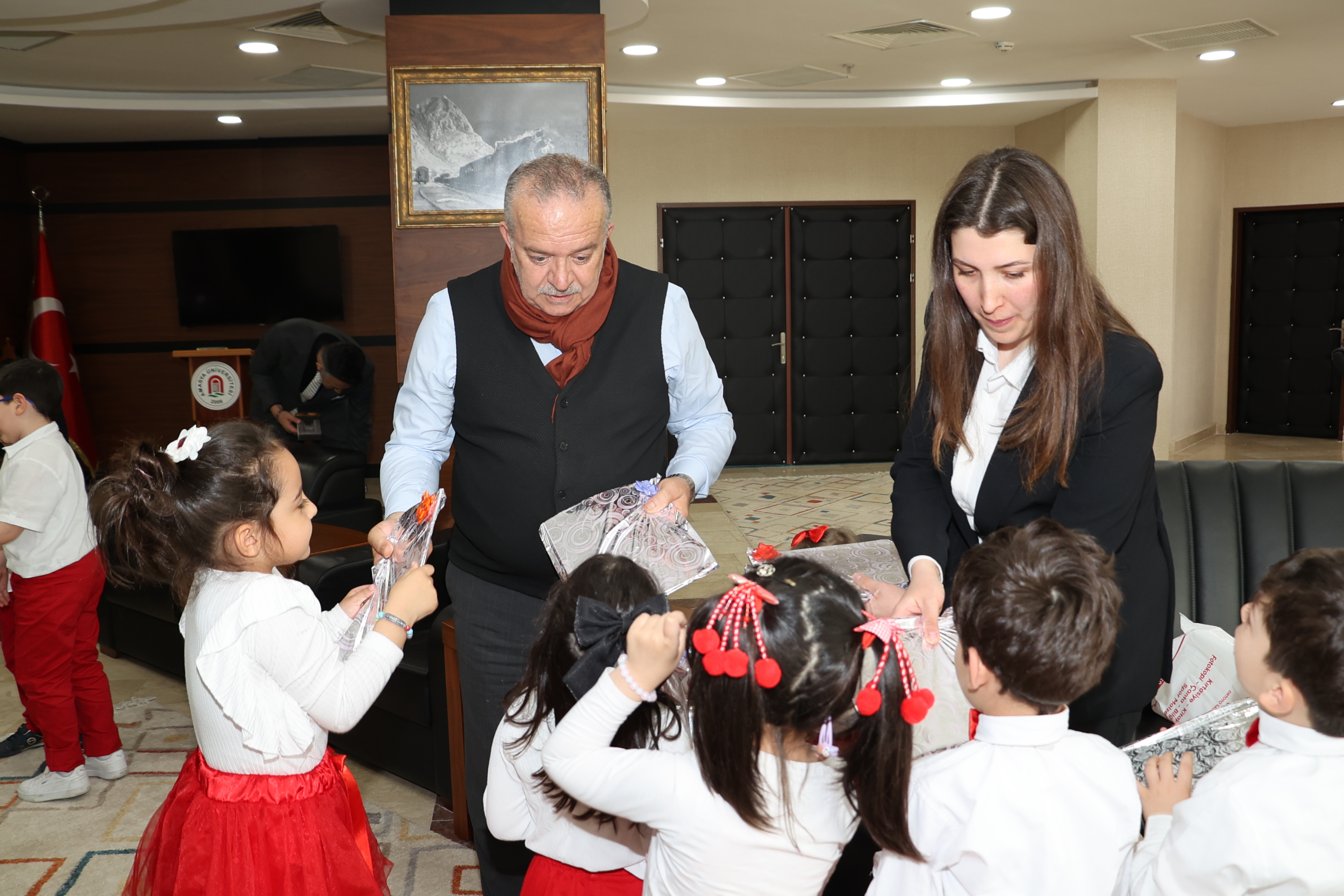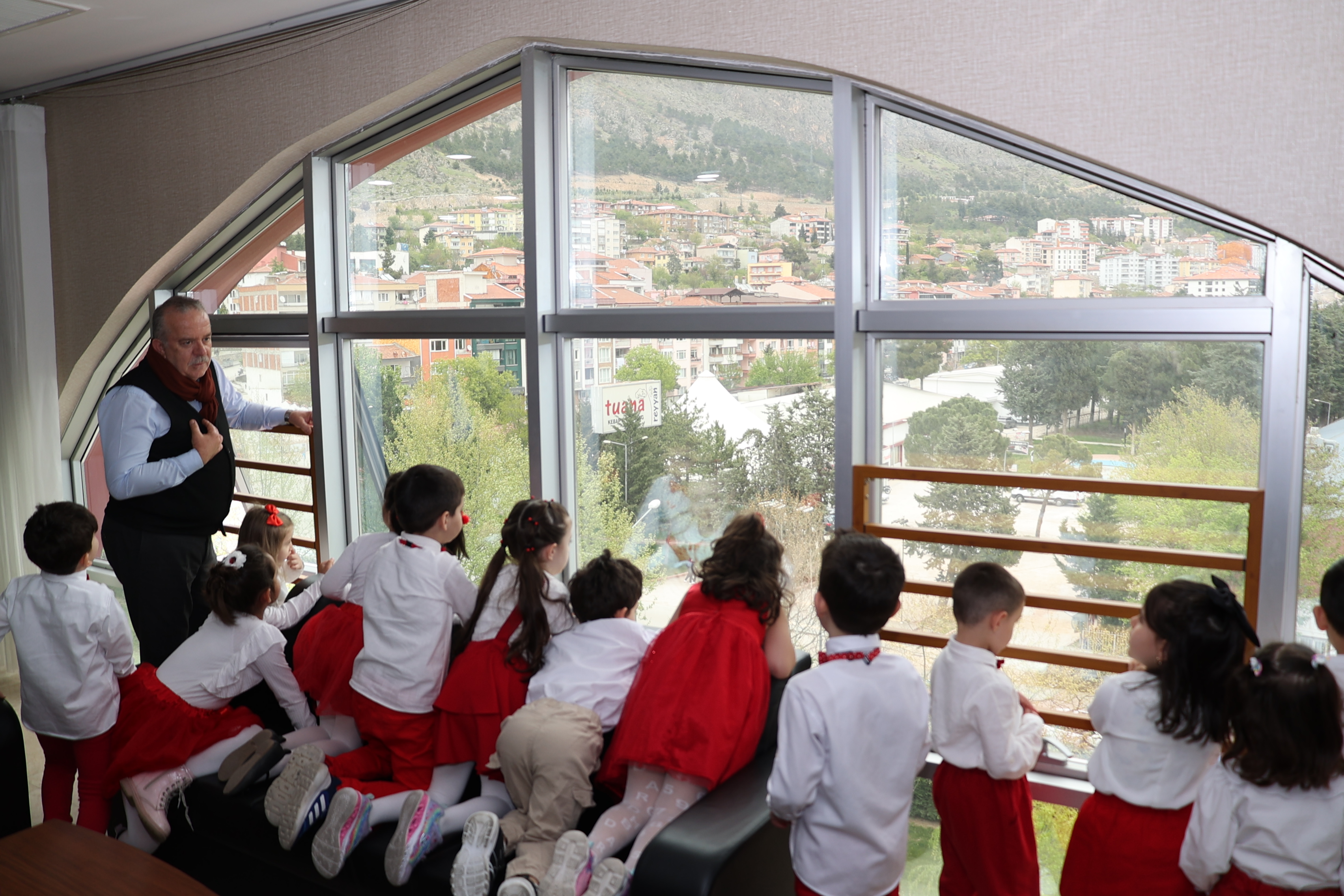 Gerçekleştirilen ziyarette minik öğrenciler, 23 Nisan Bayramı’nın coşkusunu Rektör Turabi ile paylaşırken renkli ve neşeli anlar yaşandı. Öğrencilerle yakından ilgilenen Rektör Turabi, çocukların ülkenin geleceğinin en önemli teminatı olduğunu vurgulayarak, tüm çocukların 23 Nisan Ulusal Egemenlik ve Çocuk Bayramı’nı kutladı.