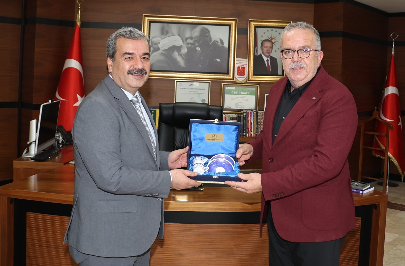 Rektör Prof. Dr. Ahmet Hakkı Turabi, ziyaretten duyduğu memnuniyeti dile getirerek Prof. Dr. Mehmet Kul’a teşekkür etti. Prof. Dr. Mehmet Kul ise misafirperverliği dolayısıyla Rektör Turabi’ye teşekkür ederek çalışmalarında başarılar diledi.