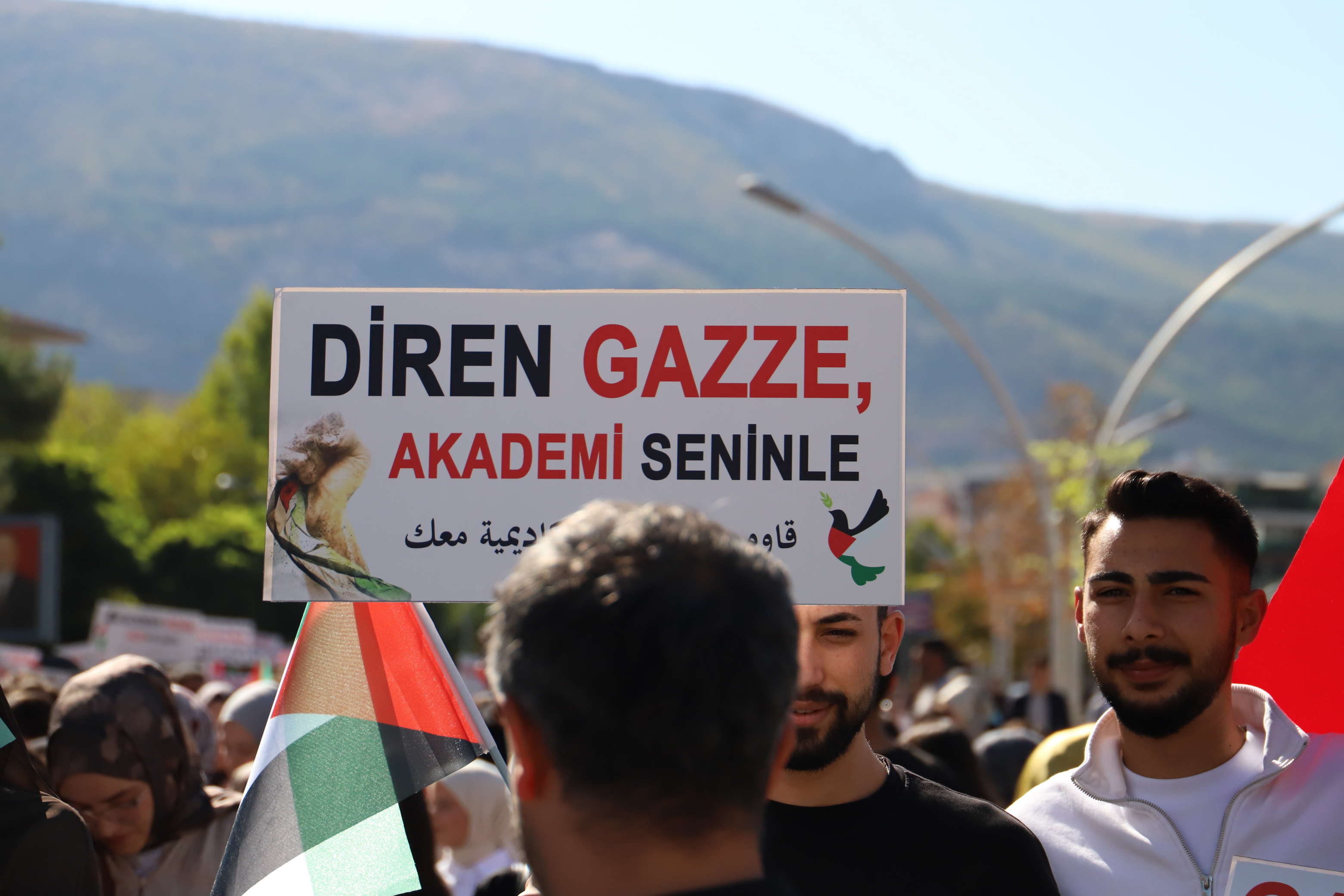 Özvar, Amasya’da ÜNİ-DOKAP tarafından düzenlenen Filistin'e destek yürüyüşüne 15 üniversiteden öğrencilerle birlikte katıldı: